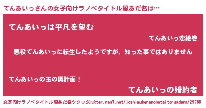 | 男性向けラノベタイトル風あだ名 | 『この素晴らしい世界にてんあいっを!』 |