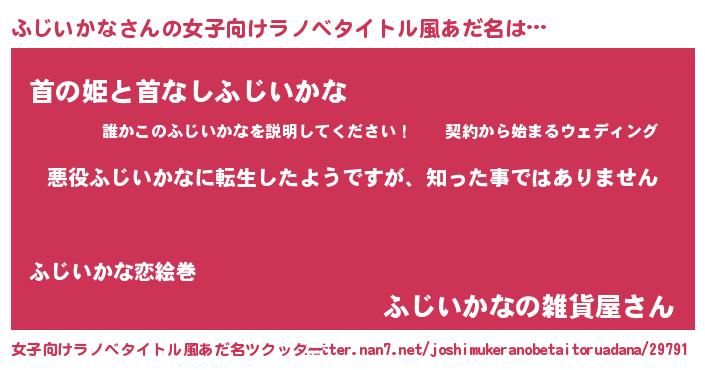 | 男性向けラノベタイトル風あだ名 | 『この素晴らしい世界にふじいかなを!』 |