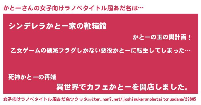 | 胡散臭い通販商品みたいなあだ名 | 『世界中を虜にした世界で10本だけ現存している希少なブランデー…その名も「かとー」』 |