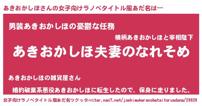 | 男性向けラノベタイトル風あだ名 | 『おまえをオタクにしてやるから、俺をあきおかしほにしてくれ! 』 |