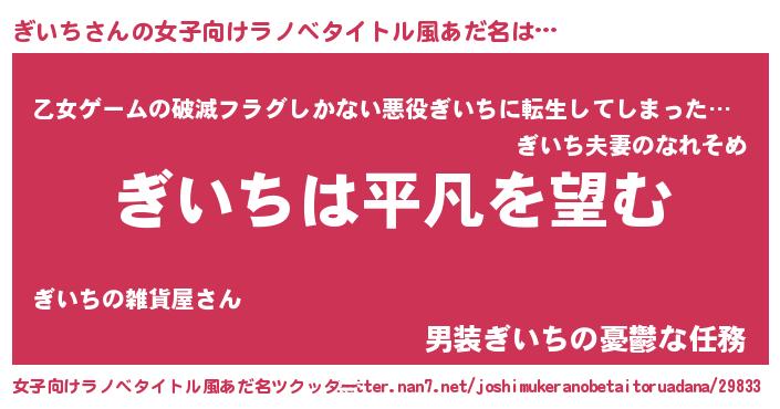 | ヘコむあだ名 | 『ぎいを』『豆乳』『ぎいち(震え声)』 |