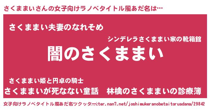 | 男性向けラノベタイトル風あだ名 | 『Re:さくままいから始める異世界生活』 |