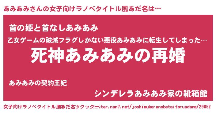| 男性向けラノベタイトル風あだ名 | 『ノーゲーム・ノーアミアミ』 |