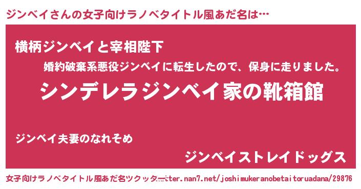 | 男性向けラノベタイトル風あだ名 | 『冴えないジンベイの育てかた』 |