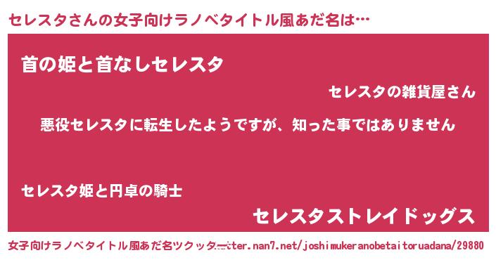 | 恥ずかしいあだ名 | 『セレスタデラックス』『セレっちょ』 |