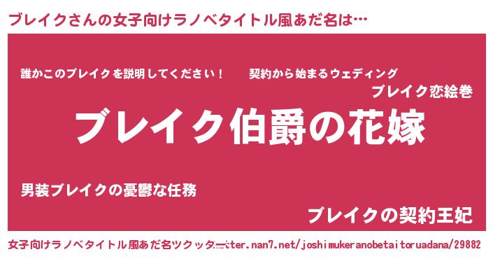 | 恥ずかしいあだ名 | 『ブレっちょ』『プリティーブレイク』 |