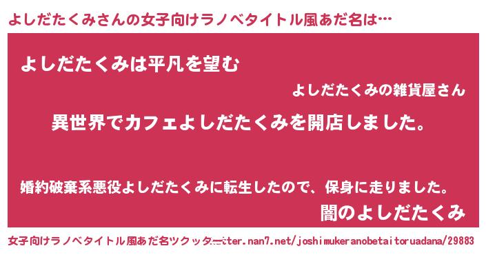 | 胡散臭い通販商品みたいなあだ名 | 『前代未聞の水素水…その名も「よしだたくみ」』 |
