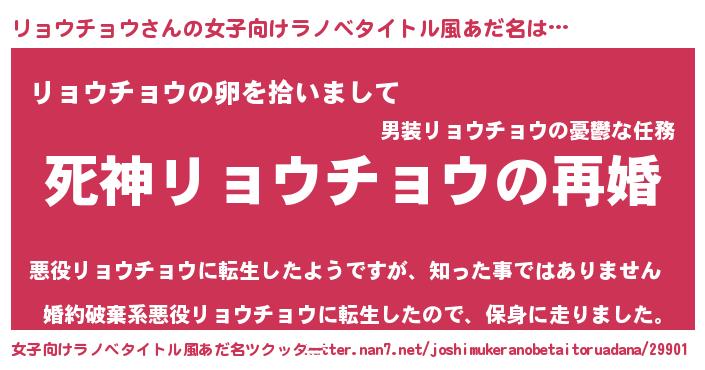 | ヘコむあだ名 | 『リョぷりん』『リョウチョウ(笑)』 |