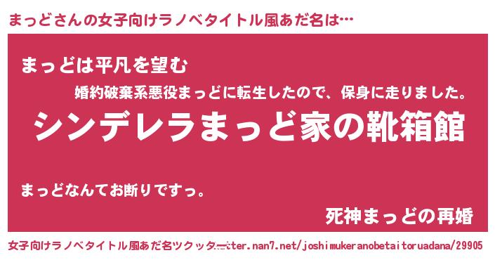 | 胡散臭い通販商品みたいなあだ名 | 『信頼と実績のサプリメント…その名も「まっど」』 |