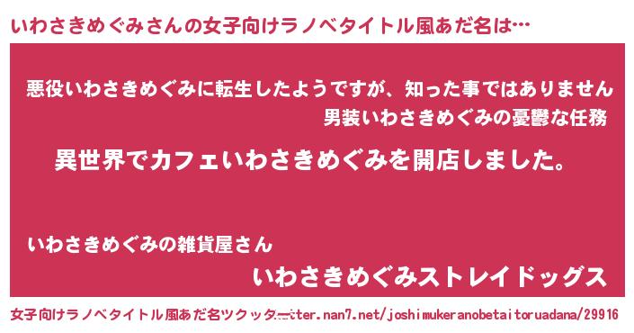 | ヘコむあだ名 | 『いわさきめぐみ(小並感)』『酢こんぶ』 |