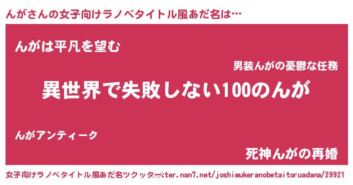 | 男性向けラノベタイトル風あだ名 | 『んがという概念が存在しない退屈な世界 』 |