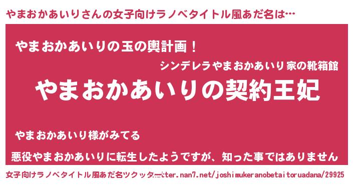 | 胡散臭い通販商品みたいなあだ名 | 『来世でも幸せになれる水素水…その名も「やまおかあいり」』 |
