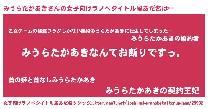 | 男性向けラノベタイトル風あだ名 | 『魔法科高校のみうらたかあき』 |