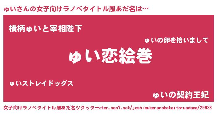 | ヘコむあだ名 | 『ゅい(爆)』『ゅいを』『なまこ酢』 |