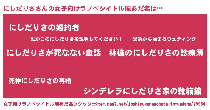 | 意味不明あだ名 | 『住所不定無職にしだりさ(98歳)』 |