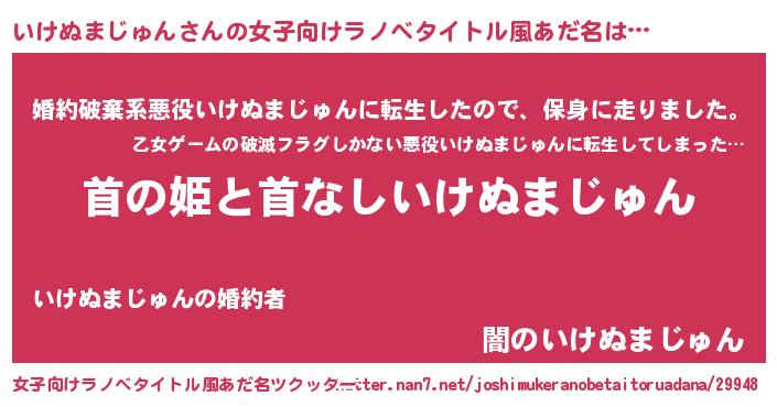 | 男性向けラノベタイトル風あだ名 | 『はたらくいけぬまじゅんさま!』 |