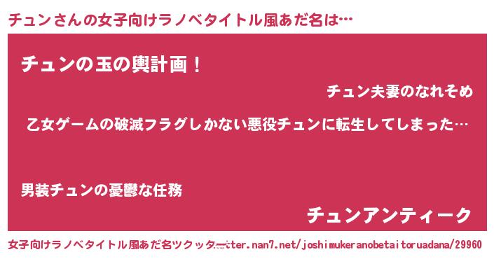 | 意味不明あだ名 | 『住所不定無職チュン(77歳)』『自称チュン』 |