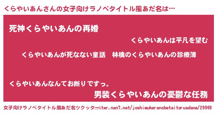 | ヘコむあだ名 | 『くらっ子』『くらやいあん(震え声)』 |