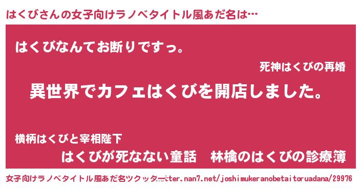 | ヘコむあだ名 | 『はくび(笑)』『豆乳』『はくもー』 |