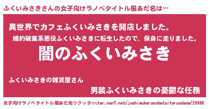 | 男性向けラノベタイトル風あだ名 | 『Re:ふくいみさきから始める異世界生活』 |