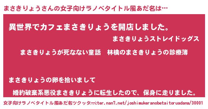 | 意味不明あだ名 | 『住所不定無職まさきりょう(68歳)』 |