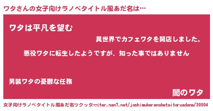 | 胡散臭い通販商品みたいなあだ名 | 『あなたにだけ特別に提供する世界で10本だけ現存している希少なブランデー…その名も「ワタ」』 |