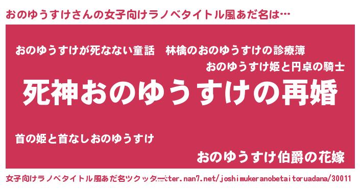 | 男性向けラノベタイトル風あだ名 | 『ノーゲーム・ノーオノユウスケ』 |