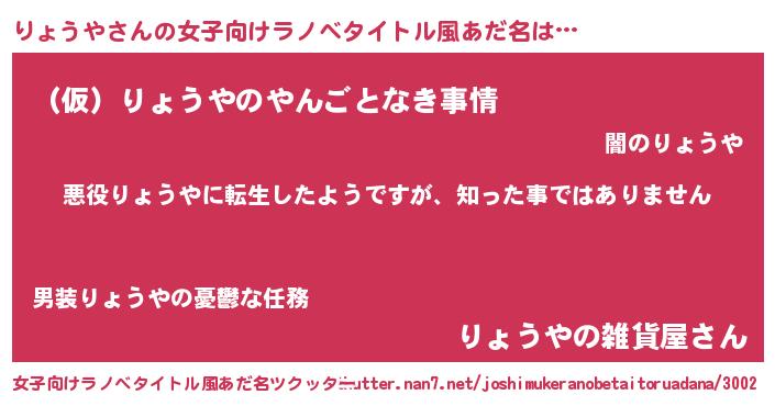 | 胡散臭い通販商品みたいなあだ名 | 『あなたにだけ特別に提供する限定10本のレアな日本酒…その名も「りょうや」』 |