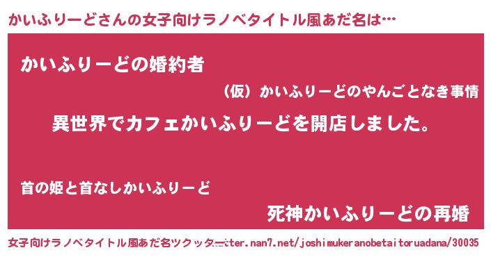 | ヘコむあだ名 | 『かいふりーど(笑)』『レバニラ』 |