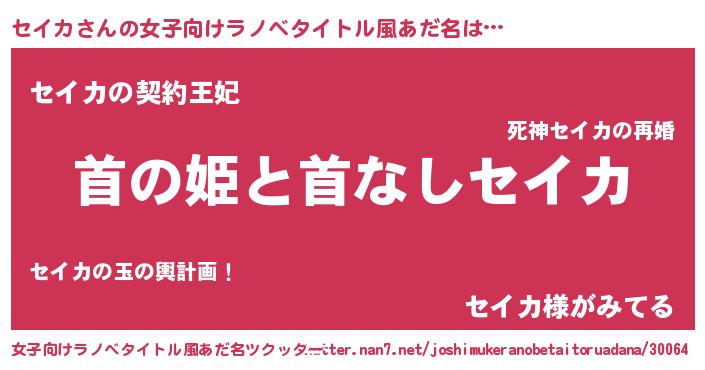 | ヘコむあだ名 | 『セイカ(笑)』『セイを』『なまこ酢』 |