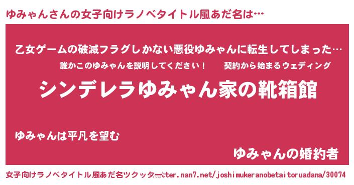 | 男性向けラノベタイトル風あだ名 | 『冴えないゆみゃんの育てかた』 |
