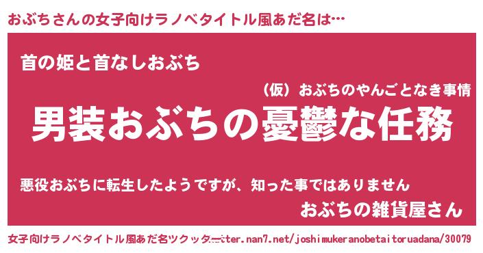 | 胡散臭い通販商品みたいなあだ名 | 『運命の人と巡り会える高級そうな壺…その名も「おぶち」』 |