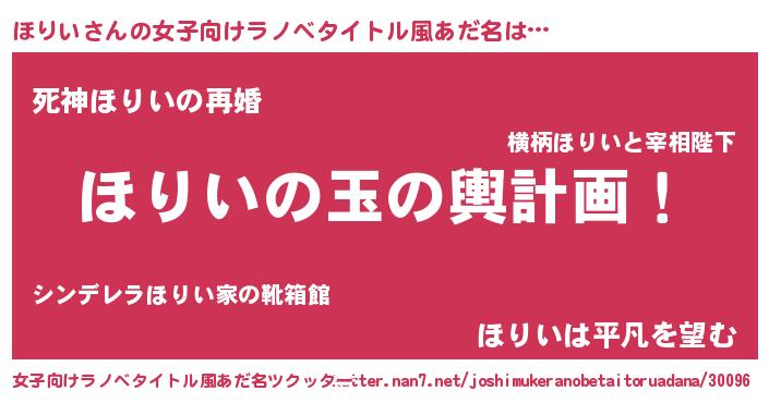 | ヒーロー風カッコイイあだ名 | 『慈愛の使者ほりい』『天弓騎士ホリ』 |