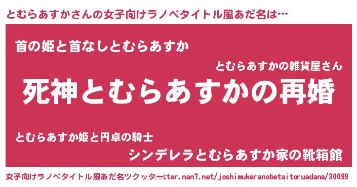 | 男性向けラノベタイトル風あだ名 | 『ノーゲーム・ノートムラアスカ』 |