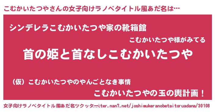 | 男性向けラノベタイトル風あだ名 | 『はたらくこむかいたつやさま!』 |