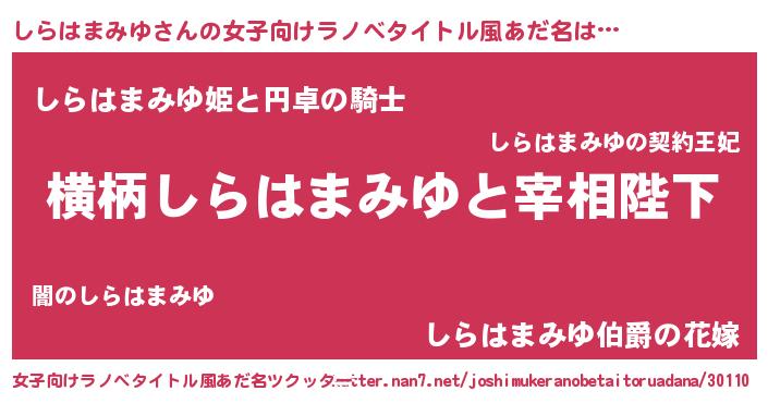 | 男性向けラノベタイトル風あだ名 | 『しらはまみゆに滅ぼされるだけの簡単なお仕事です』 |