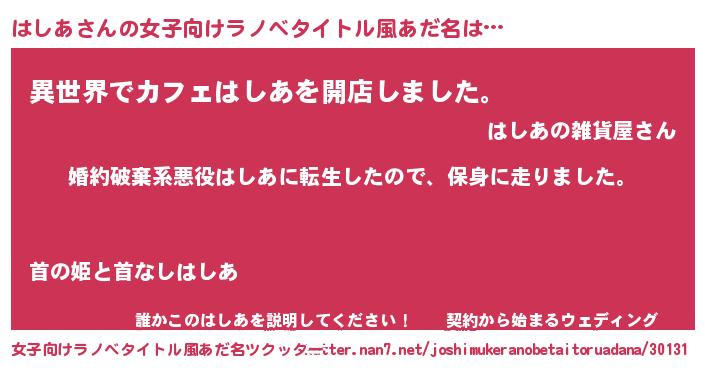 | 意味不明あだ名 | 『めかぶ科はしあ属』『永久保存はしあ』 |