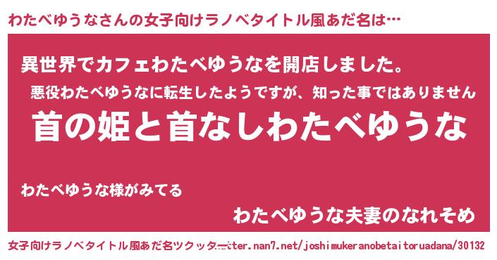 | 男性向けラノベタイトル風あだ名 | 『はたらくわたべゆうなさま!』 |