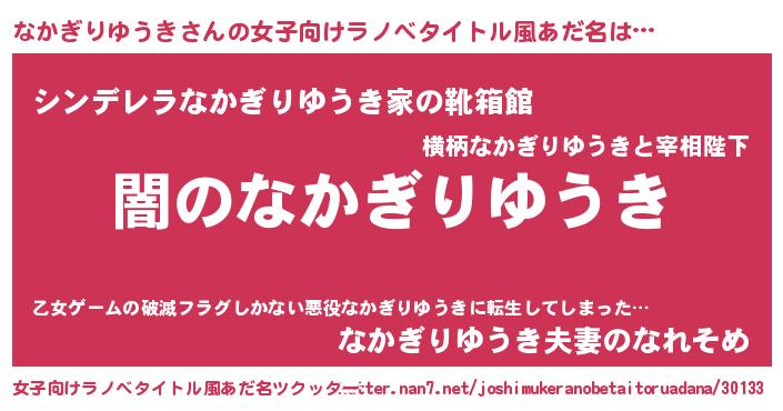 | 男性向けラノベタイトル風あだ名 | 『Re:なかぎりゆうきから始める異世界生活』 |