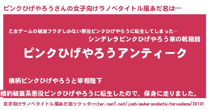| 胡散臭い通販商品みたいなあだ名 | 『テレビで話題のアガリクス…その名も「ピンクひげやろう」』 |