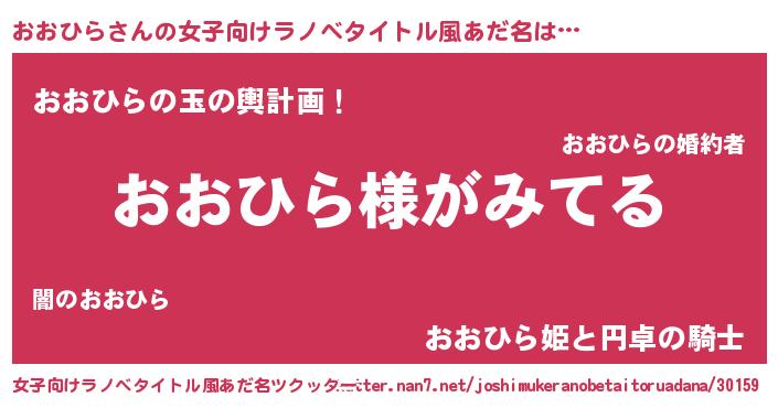 | 男性向けラノベタイトル風あだ名 | 『おおひらの嫁は女の子じゃないと思った?』 |