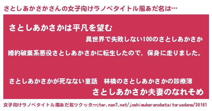 さとしあかさかさんの女子向けラノベタイトル風あだ名
