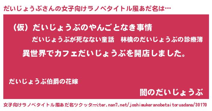 ヘコむあだ名 | 『だいじょうぶ(笑)』『だいもー』 |
