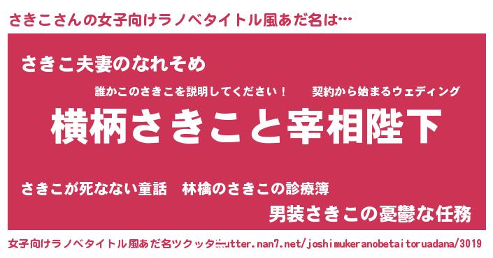| 男性向けラノベタイトル風あだ名 | 『さきこに滅ぼされるだけの簡単なお仕事です』 |