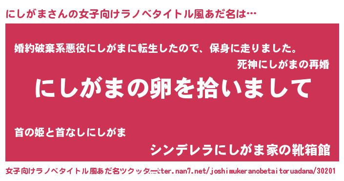 | 意味不明あだ名 | 『とにかく怪しいにしがま』 |