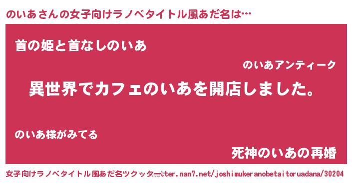 | ヘコむあだ名 | 『のいあ(爆)』『のいを』『豆乳』 |