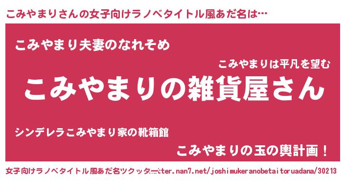 | 意味不明あだ名 | 『こみやまりフォーエバー』 |