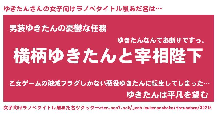 | 男性向けラノベタイトル風あだ名 | 『ゆきたんに滅ぼされるだけの簡単なお仕事です』 |