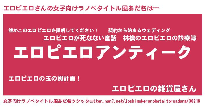 | 胡散臭い通販商品みたいなあだ名 | 『テレビで話題の高麗人参…その名も「エロピエロ」』 |