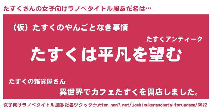 | 胡散臭い通販商品みたいなあだ名 | 『信頼と実績のサプリメント…その名も「たすく」』 |